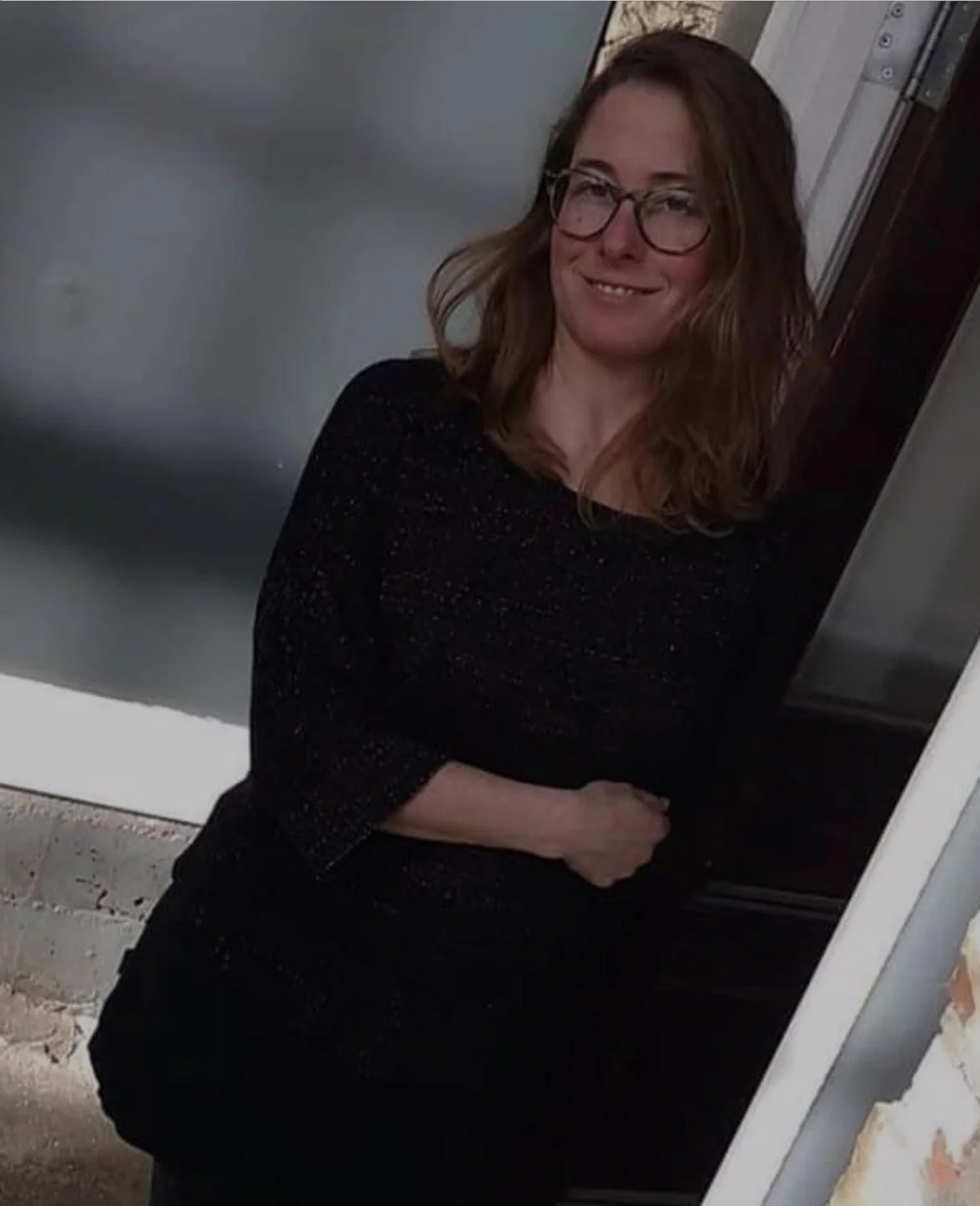 Barbara Whitehill, Librarian Emeritas, standing next to our little free library in morgan